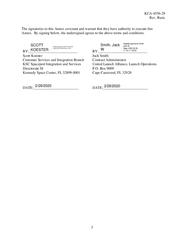 Get the free KCA-4556-29 Rev. Basic ANNEX BETWEEN THE ... - Nasa