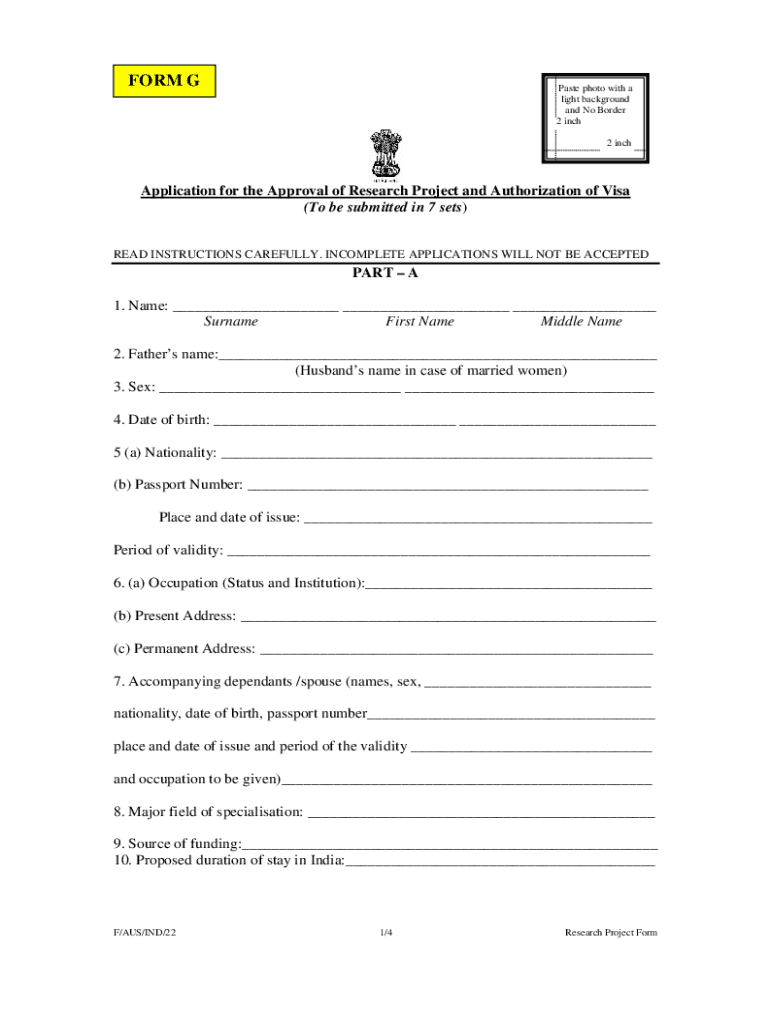 FORM Paste photo with a light background and No Border 2 inch 2 inchApplication for the Approval of Research Project and Authorization of Visa (To be submitted in 7 sets)READ INSTRUCTIONS CAREFULLY.
