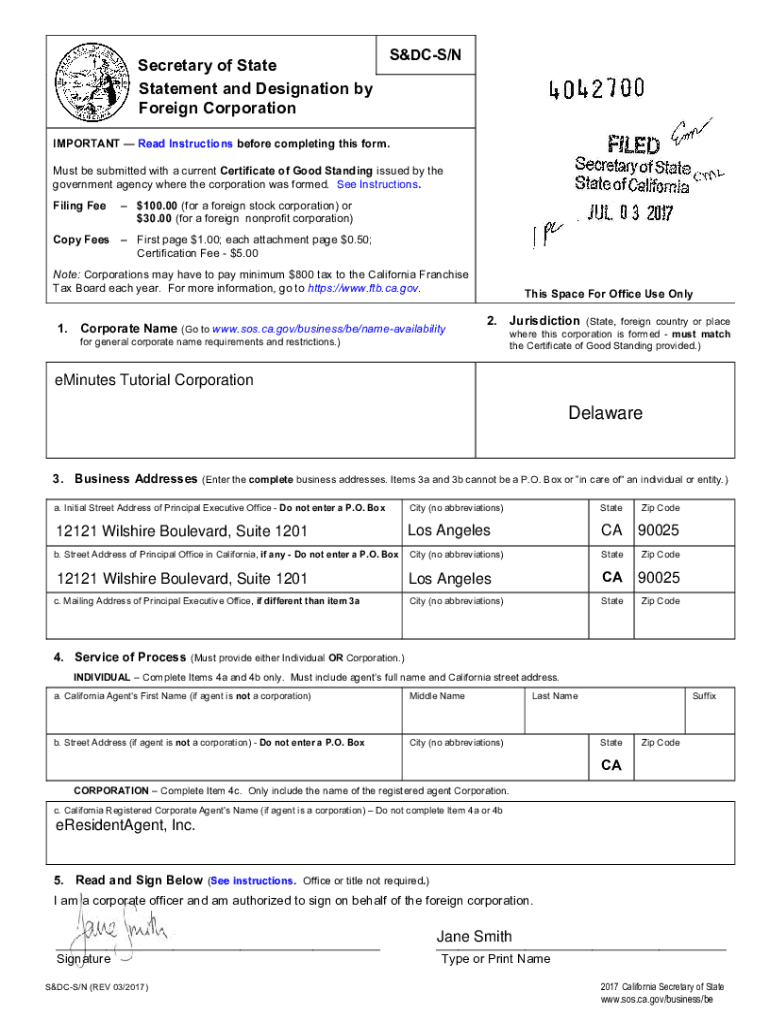 Get the free Secretary of State S&DC-S/N Statement and Designation by ...