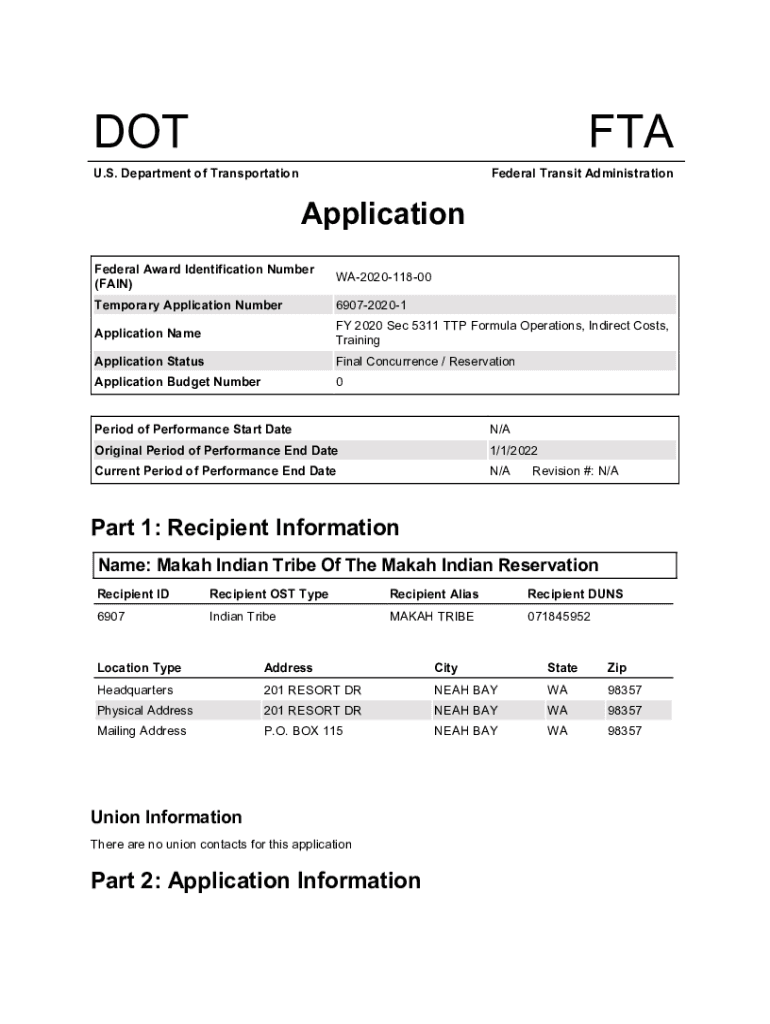 DOTTED. S. Department of Transportation Federal Transit AdministrationApplication