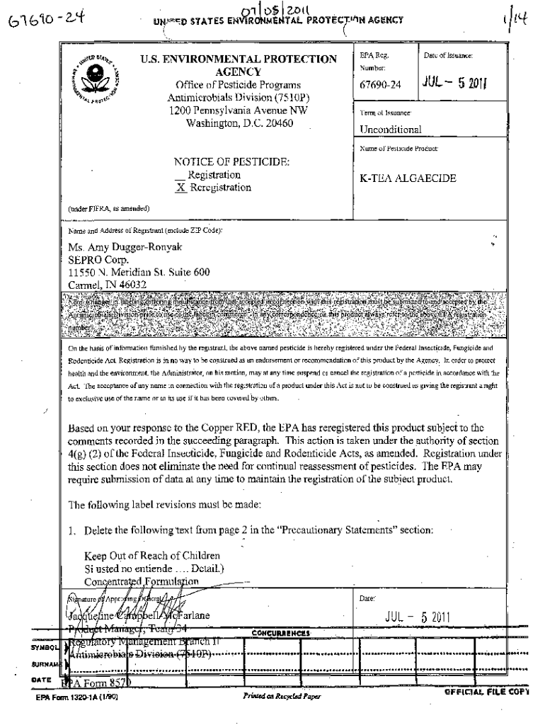 Get the free U.S. EPA, Pesticides, Label, K-TEA ALGAECIDE, 7/5/2011. Pesticide Product Label, K-T...