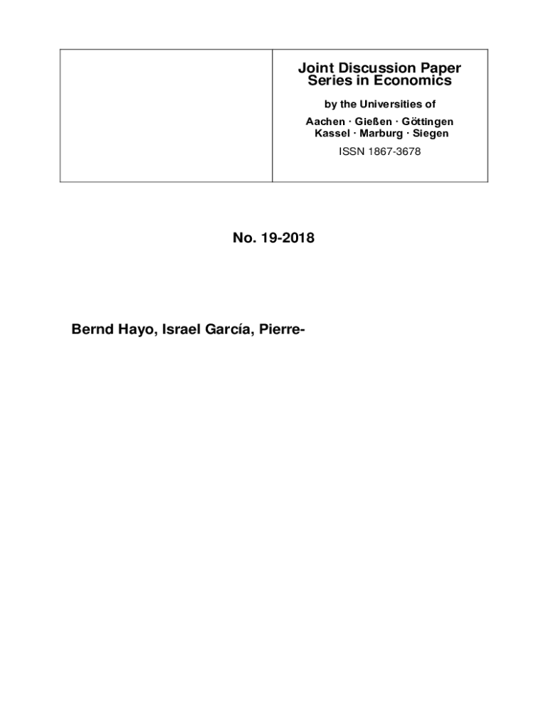 Joint Discussion Paper Series in Economics by the Universities of Aachen Given Göttingen Kassel Marburg Siegen ISSN 18673678No. 192018Bernd Hay, Israel Garcia, Pierre×XLOODXPHMon, Florian Neubauer