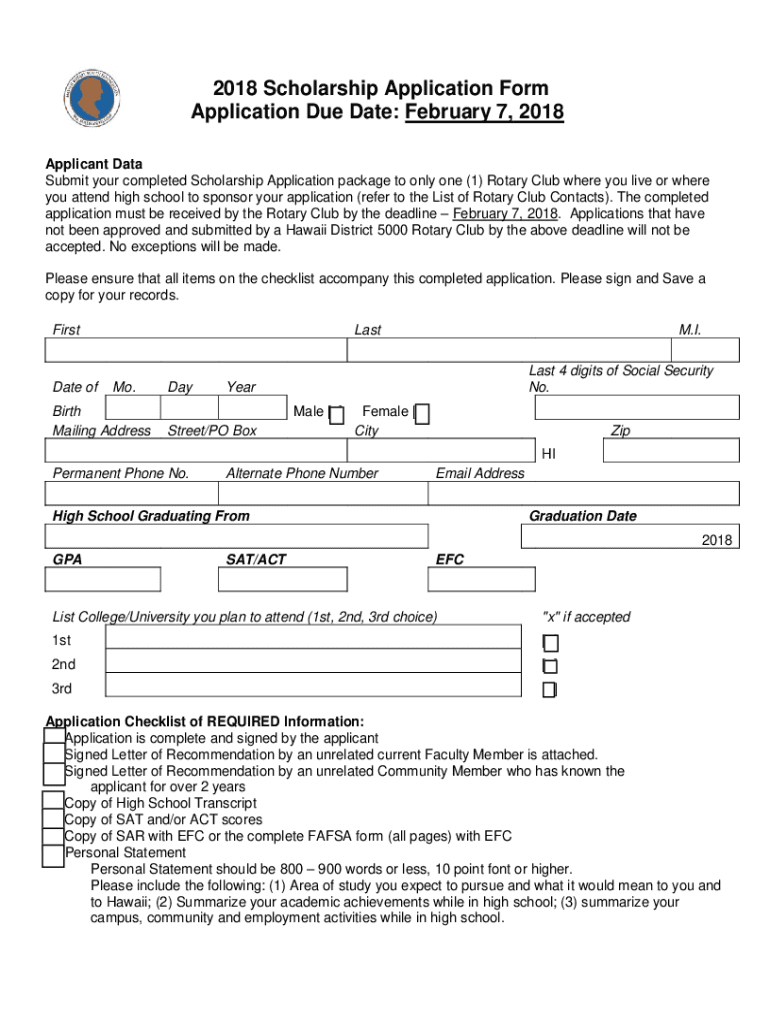 Get the free Hawaii Rotary Youth Foundation Scholarship Program Apps ...