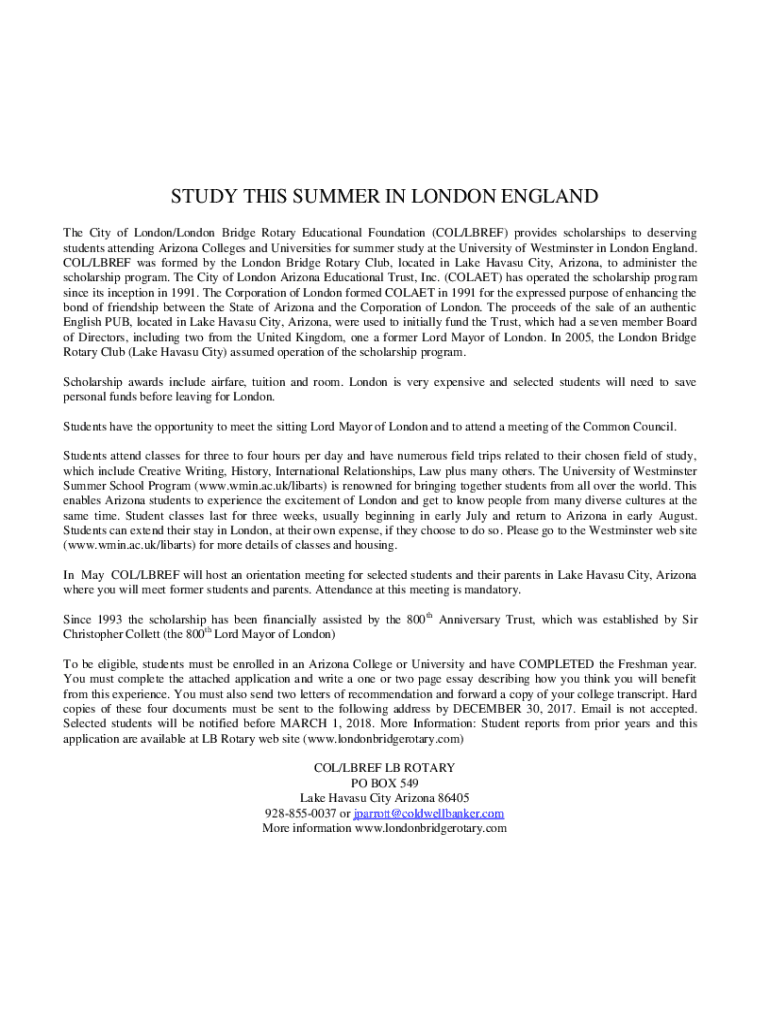 The City of London/London Bridge Rotary Educational Foundation (COL/BRIEF) provides scholarships to deserving