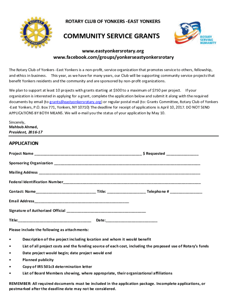 Get the free COMMUNITY SERVICE GRANTS ROTARY CLUB OF YONKERS - EAST ...