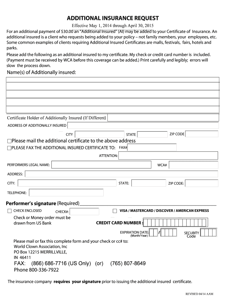 Get the free Additional Insured Request Form