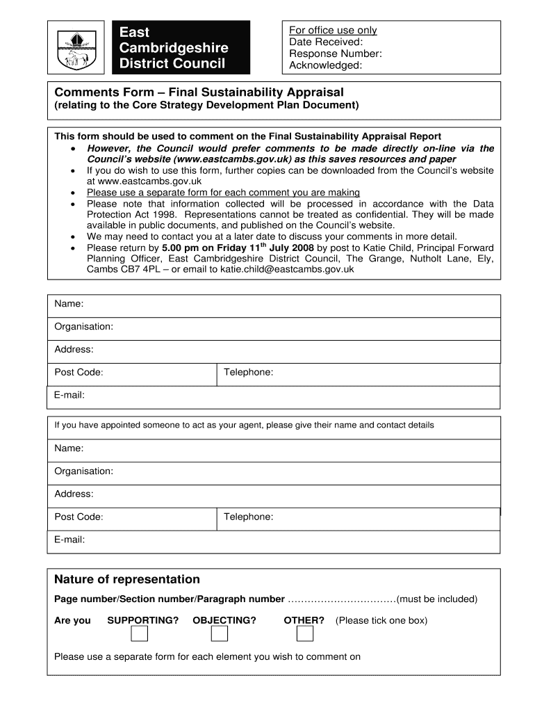 Get the free Comments Form for the Final Sustainability Appraisal - East ... - eastcambs gov