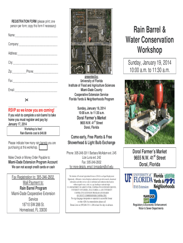 REGISTRATION FORM (please print; one person per form; copy this form if necessary)Rain Barrel & Water Conservation WorkshopName: Company: Address: Sunday, January 19, 2014 10:00 a.m. to 11:30 a.m.