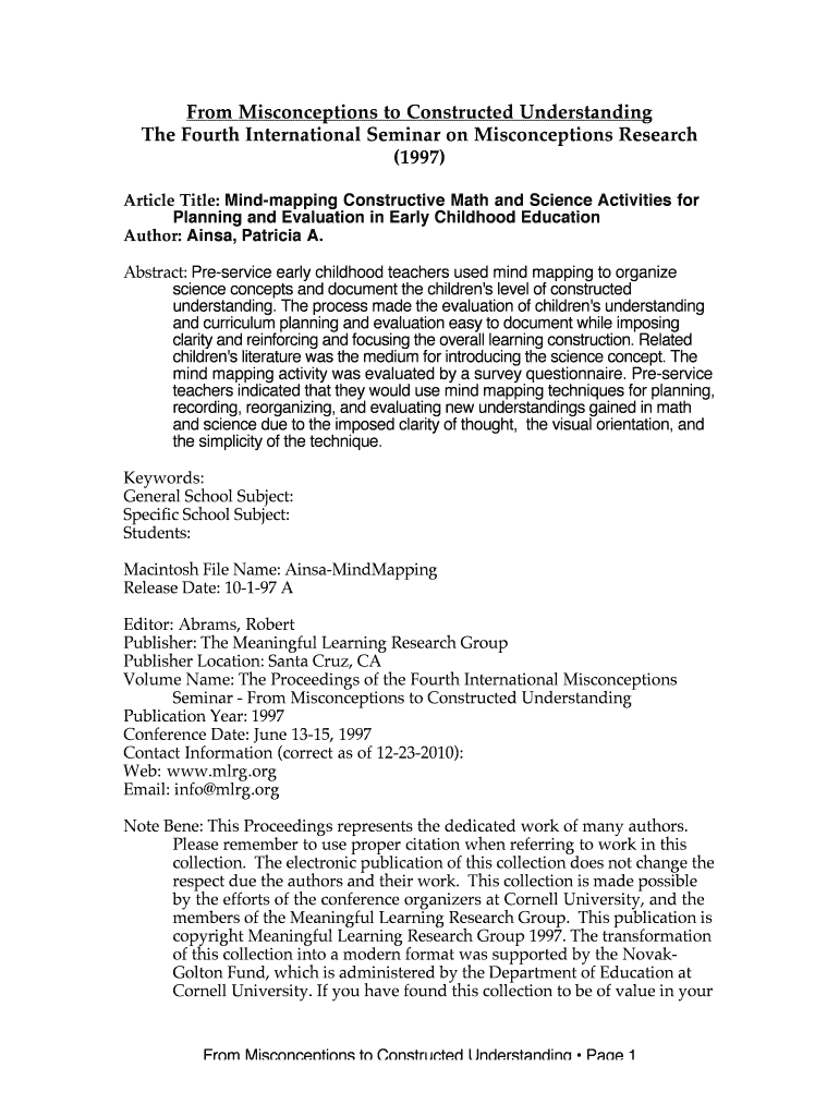 Article Title: Mind mapping Constructive Math and Science Activities for