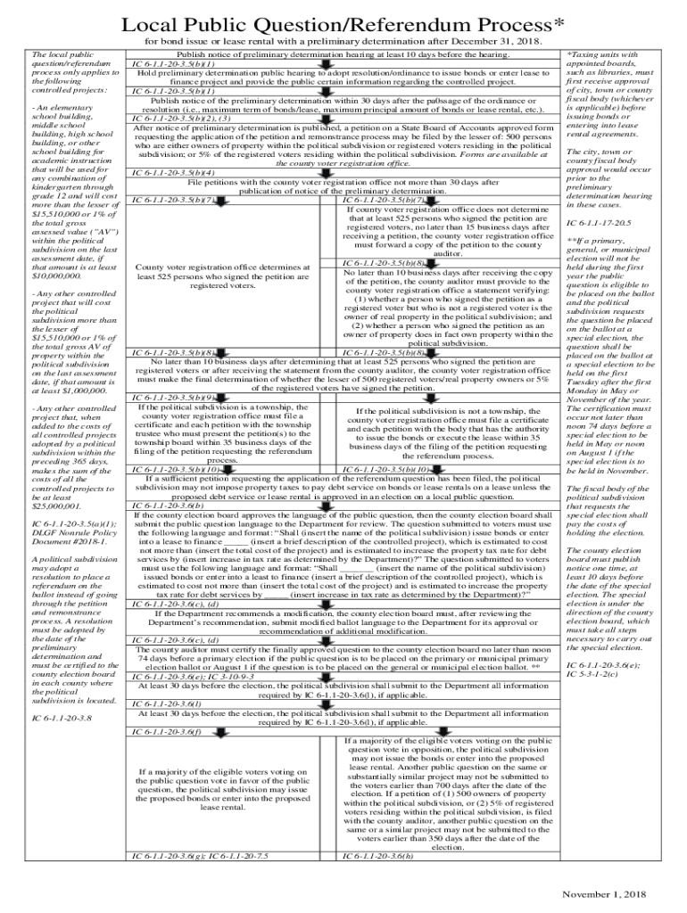 Local Public Question/Referendum Process* for bond issue or lease rental with a preliminary determination after December 31, 2018. The local public question/referendum process only applies to the