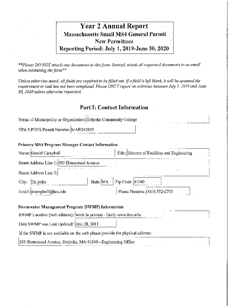 Get the free Year 2 Annual Report Massachusetts Small MS4 General Permit New Permittees for Holyo...