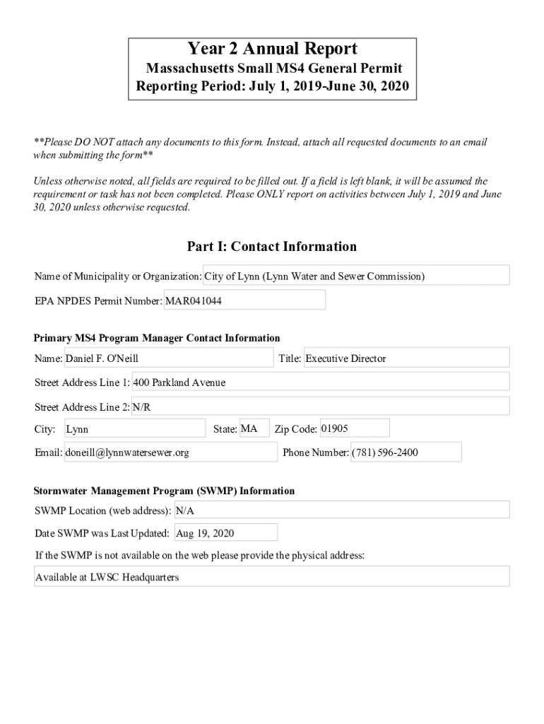 Get the free Year 2 Annual Report Massachusetts Small MS4 General Permit New Permittees for Lynn,...