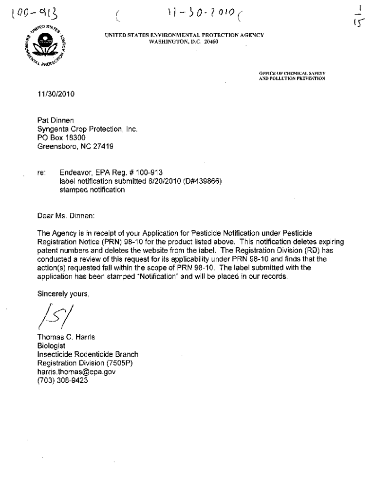 Get the free U.S. EPA, Pesticides, Label, ENDEAVOR, 11/30/2010. Pesticide Product Label, ENDEAVOR