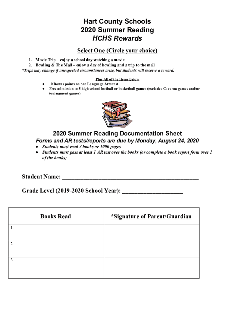 Get the free Hart County Schools 2020 Summer Reading HCHS Rewards