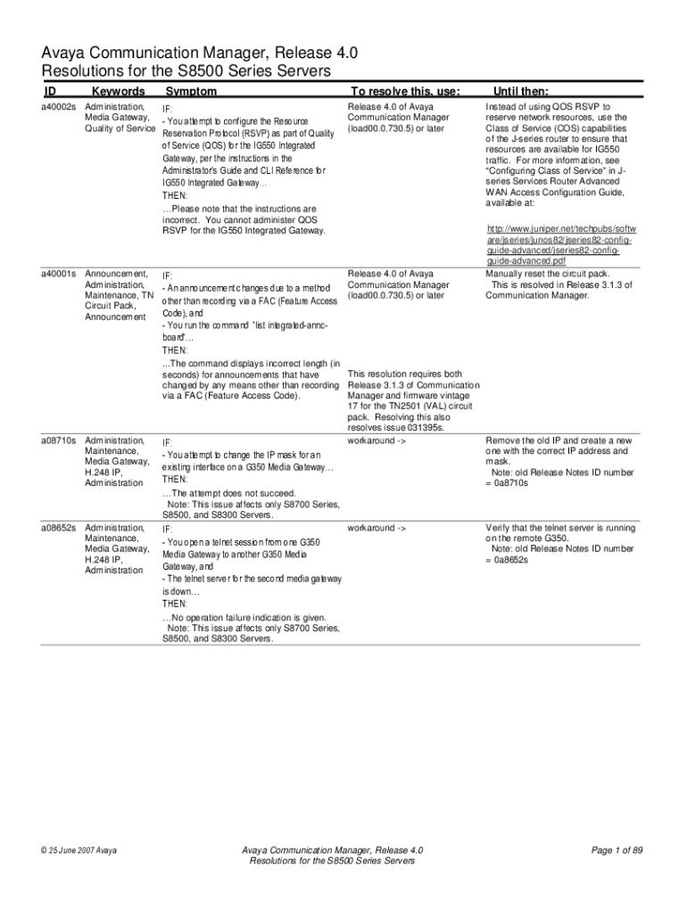 Get the free Avaya Communication Manager, Release 4.0 Resolutions for ...