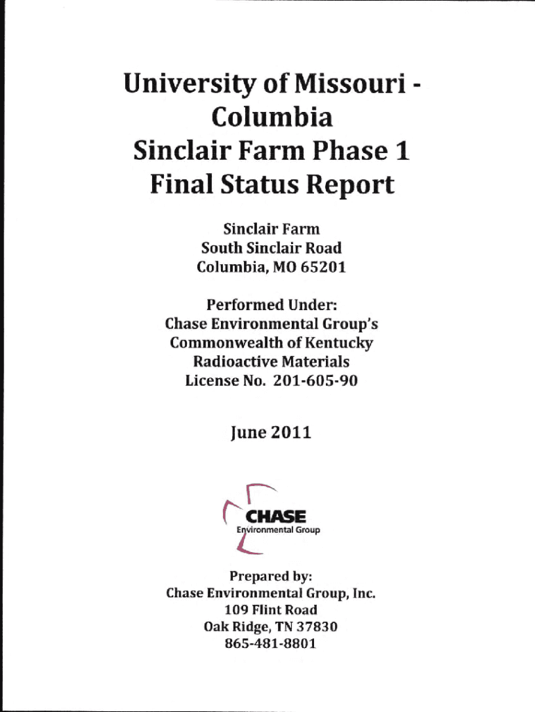 Get the free University of Missouri - Sinclair Farm Phase 1 - Final Status Report.