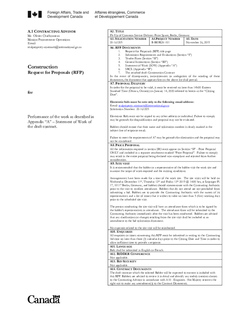 A.1 CONTRACTING ADVISOR Mr. Olivier Charbonneau