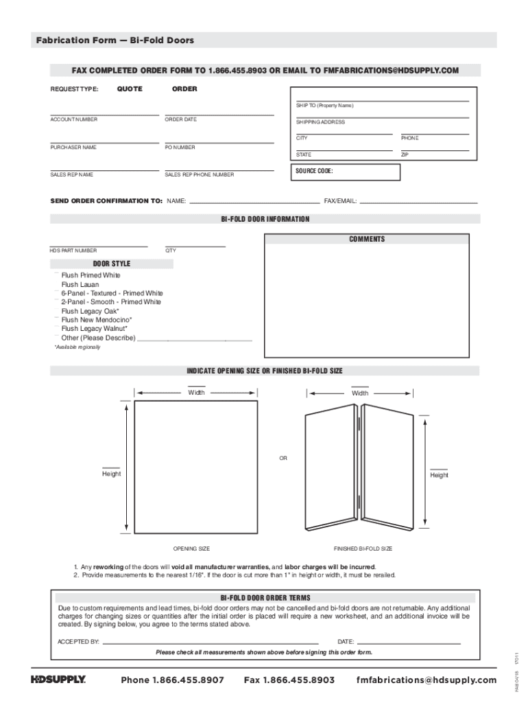Fabrication Form Bold Doors FAX COMPLETED ORDER FORM TO 1.866.455.8903 OR EMAIL TO FABRICATIONS HDSUPPLY.COM REQUEST TYPE:q Quoted ORDER SHIP TO (Property Name)ACCOUNT NUMBERORDER DATEPURCHASER NAM