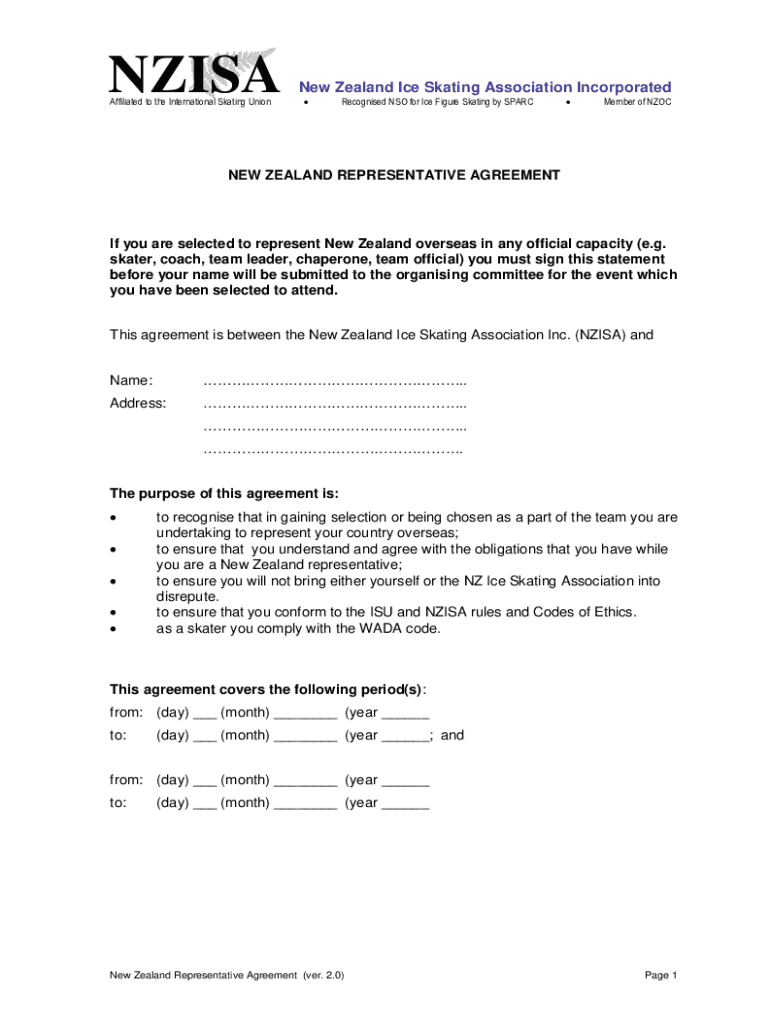 Recognized NO for Ice Figure Skating by SPARCMember of NONE ZEALAND REPRESENTATIVE Agreement you are