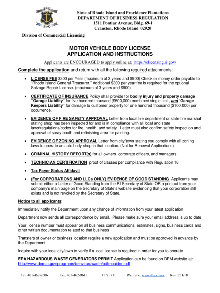 Division of Commercial LicensingMOTOR VEHICLE BODY LICENSE