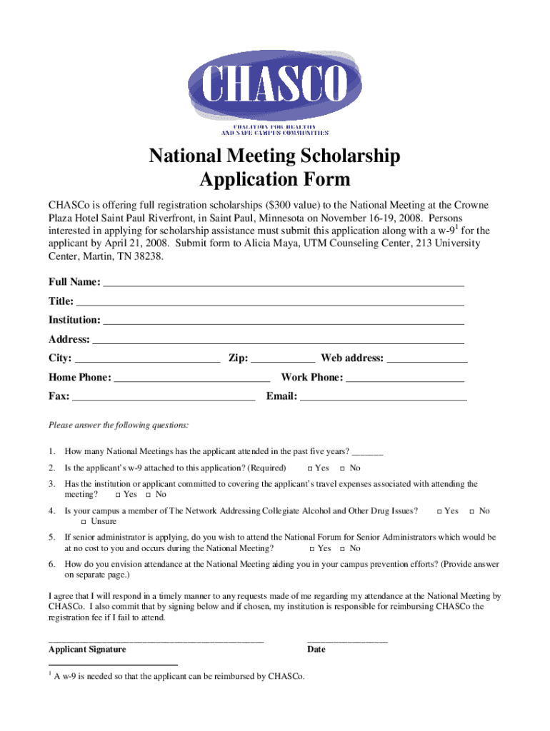 National Meeting Scholarship Application Form Chance is offering full registration scholarships ($300 value) to the National Meeting at the Crown Plaza Hotel Saint Paul Riverfront, in Saint Paul,