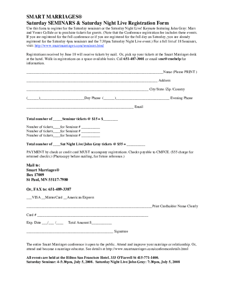 SMART MARRIAGES Saturday SEMINARS & Saturday Night Live Registration Form Uses this form to register for the Saturday seminars or the Saturday Night Live! Keynote featuring John Gray: Mars and Venus