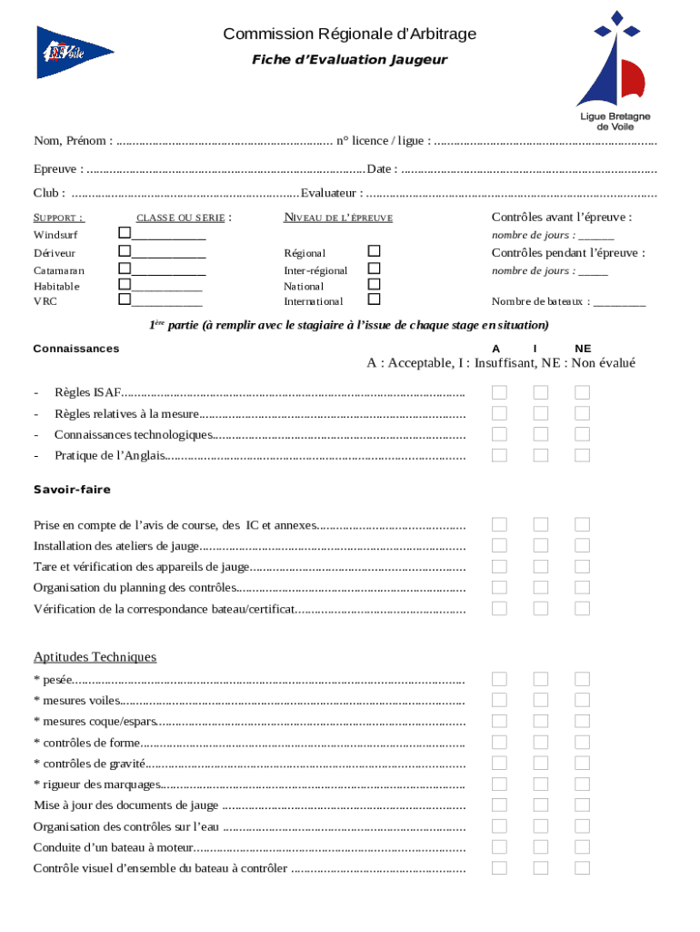 What is Annexe aux Instructions de course type - voile-bretagne.com Form?