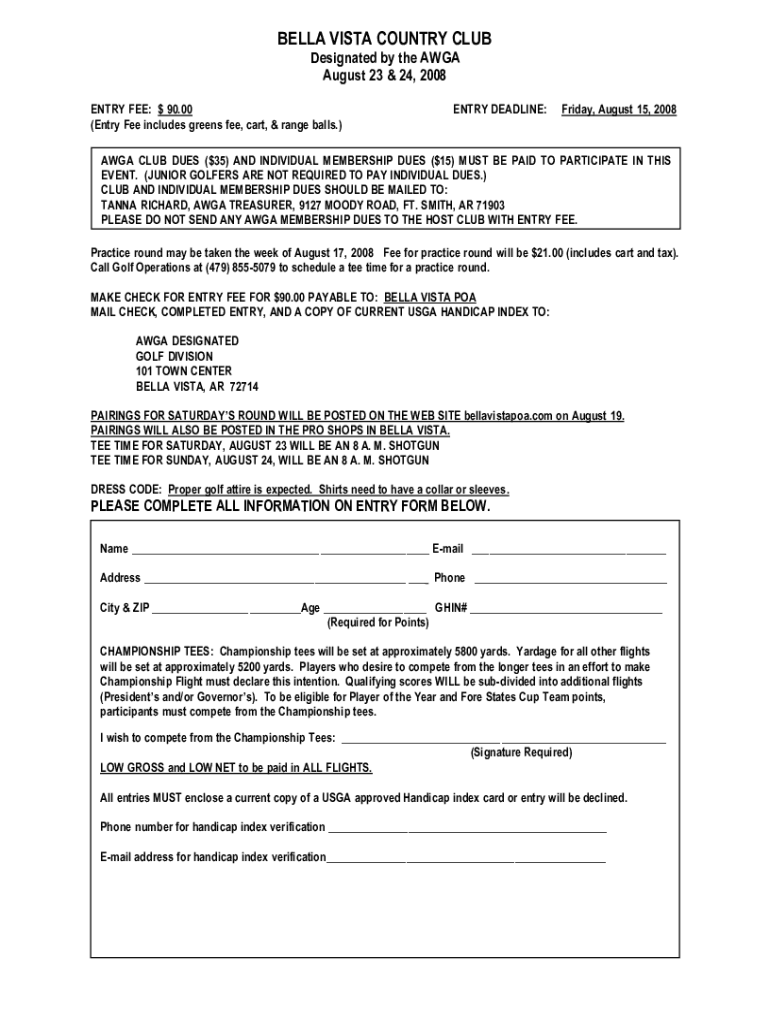 Get the free AWGA 2008 Bella Vista Designated Entry Form
