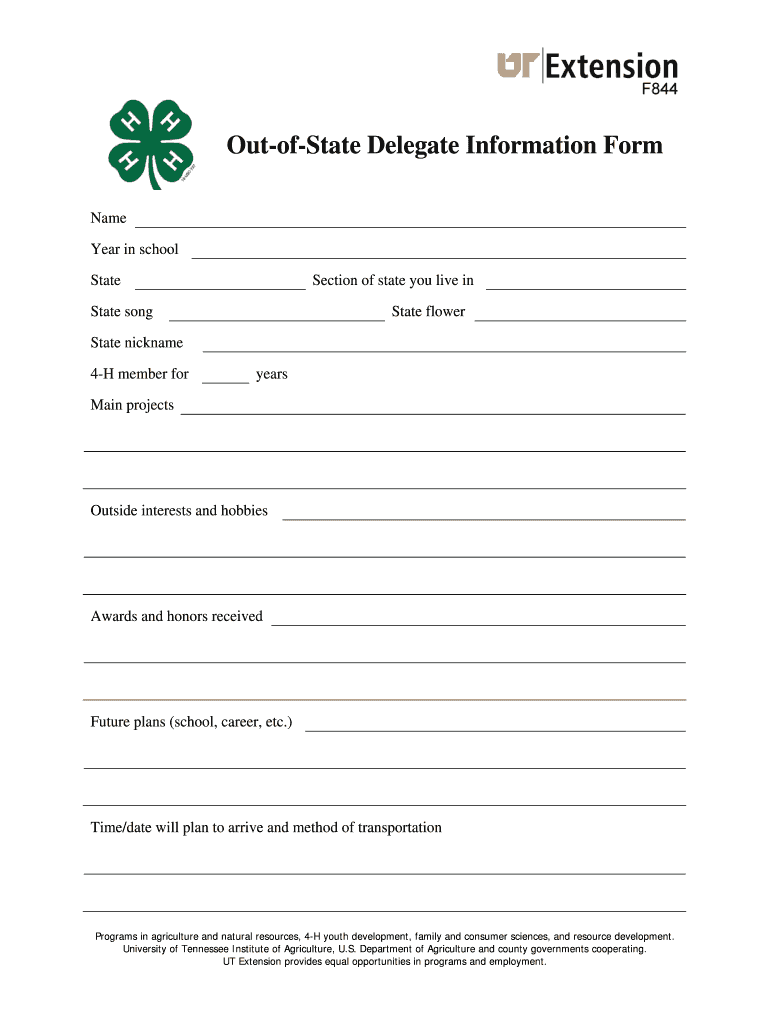 Get the free Out-of-State Delegate Information Form - University of Tennessee ... - utextension utk
