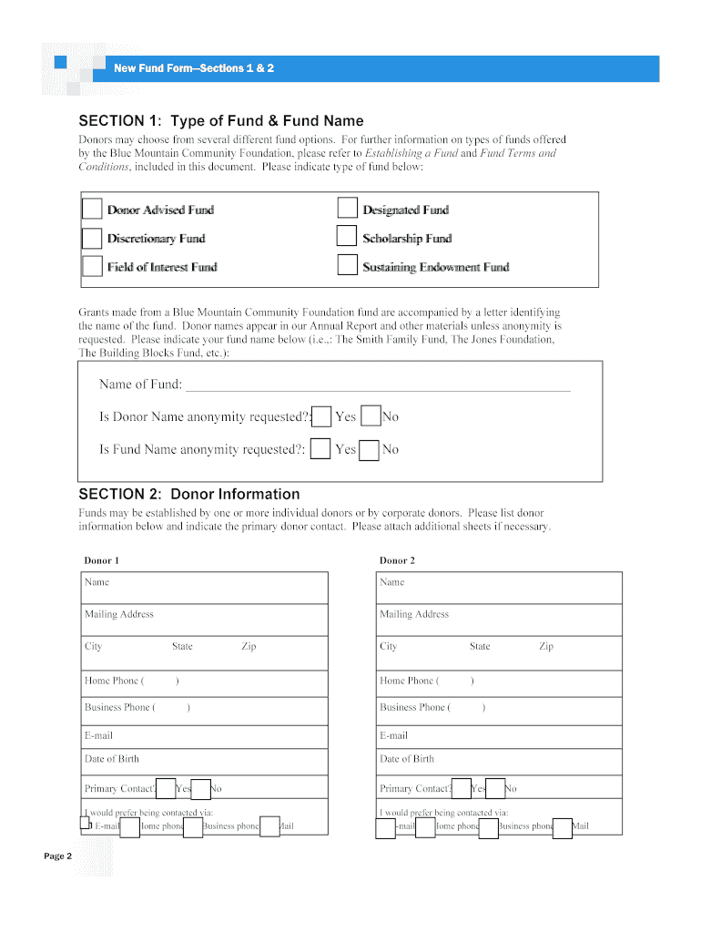Get the free New Fund Form - Blue Mountain Community Foundation - bluemountainfoundation
