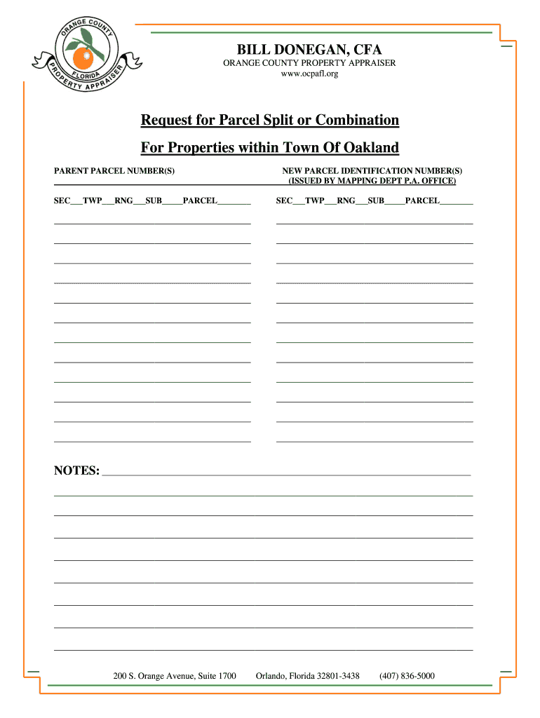 Get the free Orange County Property Appraiser Parcel Split or Combination Form