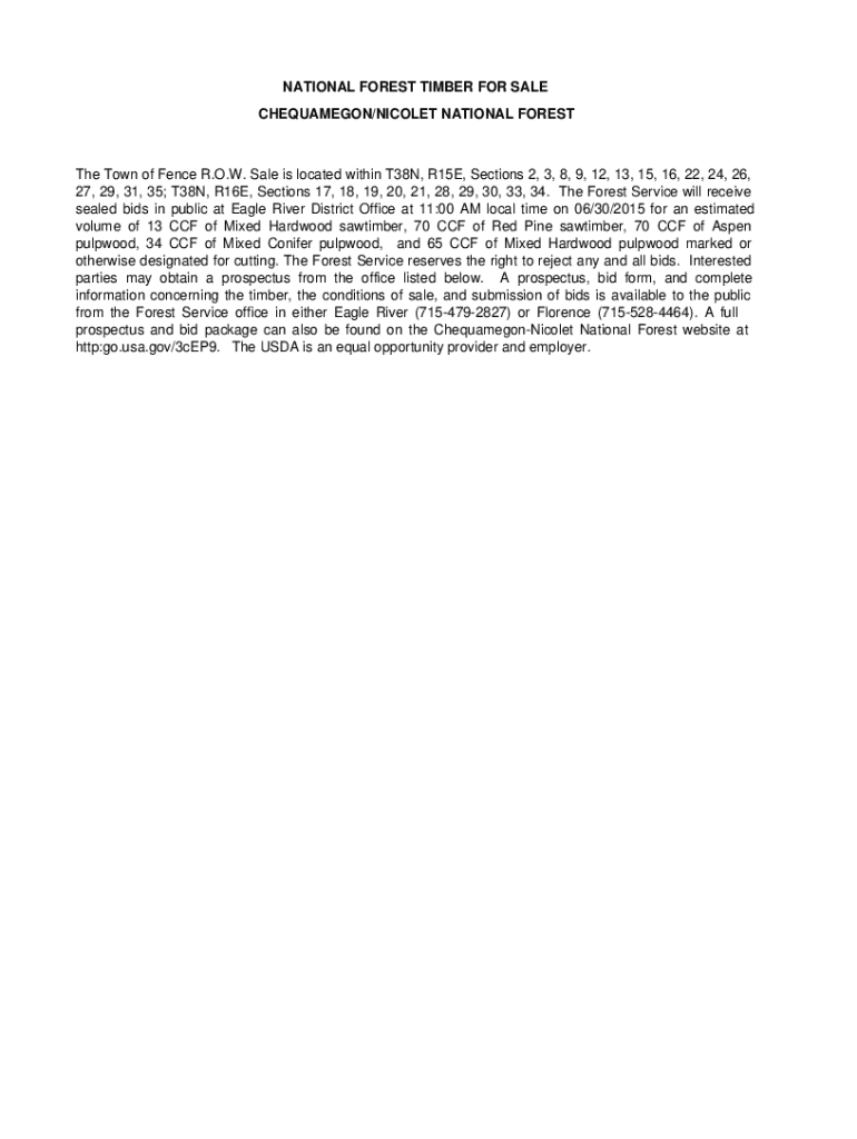 CHEQUAMEGON/NICOLE NATIONAL Forsythe Town of Fence R.O.W. Sale is located within T38N, R15E, Sections 2, 3, 8, 9, 12, 13, 15, 16, 22, 24, 26,