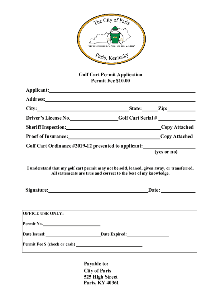Golf Cart Permit Application