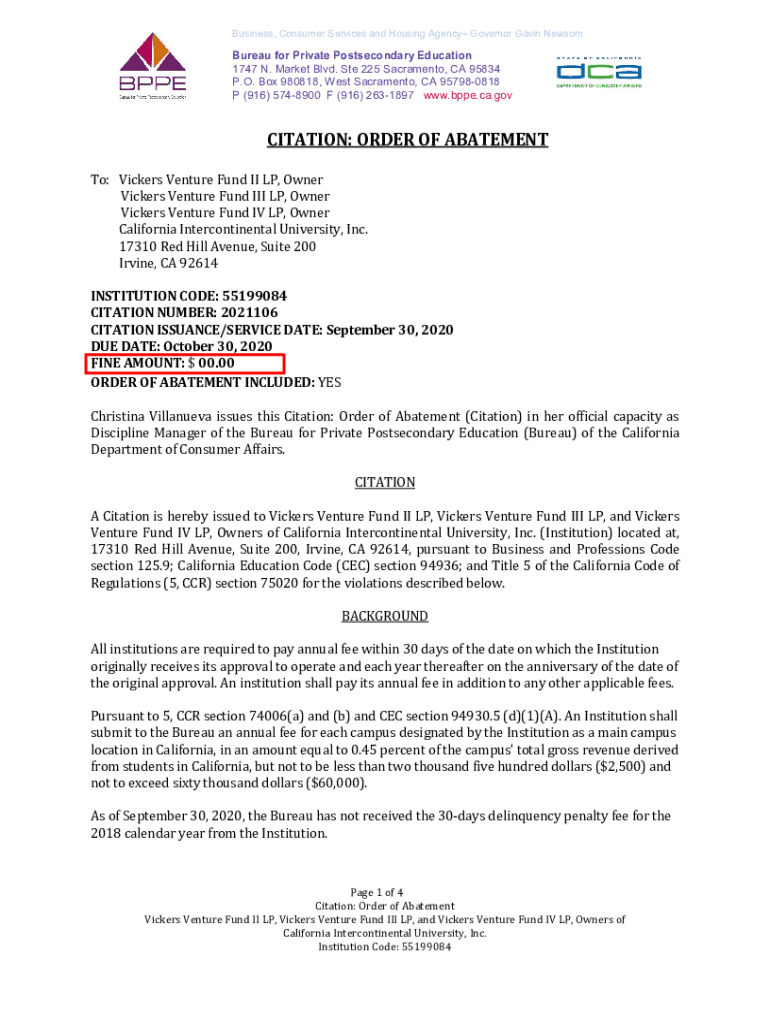 Get the free Bureau for Private Postsecondary Education - California International University, In...