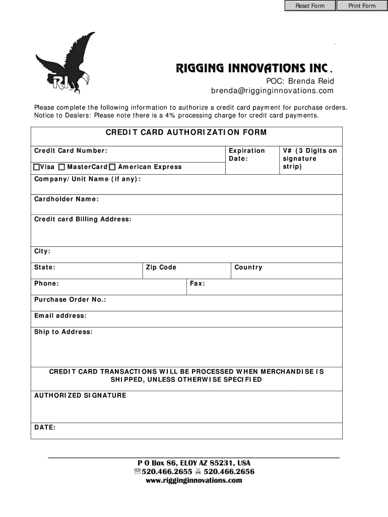 Submission Methods and Delivery of the Credit Card Authorization Form