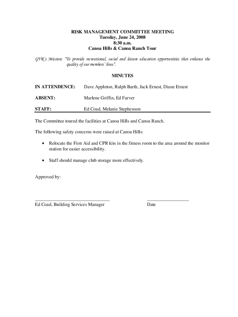 RISK MANAGEMENT COMMITTEE MEETING Tuesday, June 24, 2008 8:30 a.m. Canon Hills & Canon Ranch Tour GPRS Mission: To provide recreational, social and leisure education opportunities that enhance the