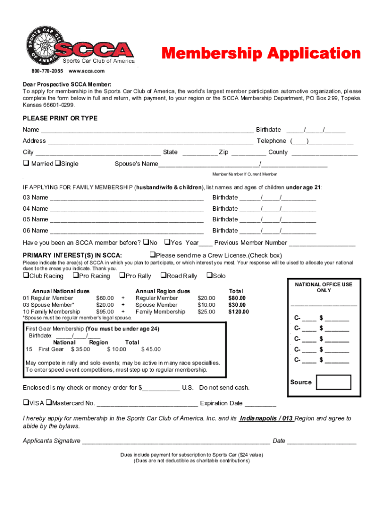Get the free To apply for membership in the Sports Car Club of America, the world's largest membe...