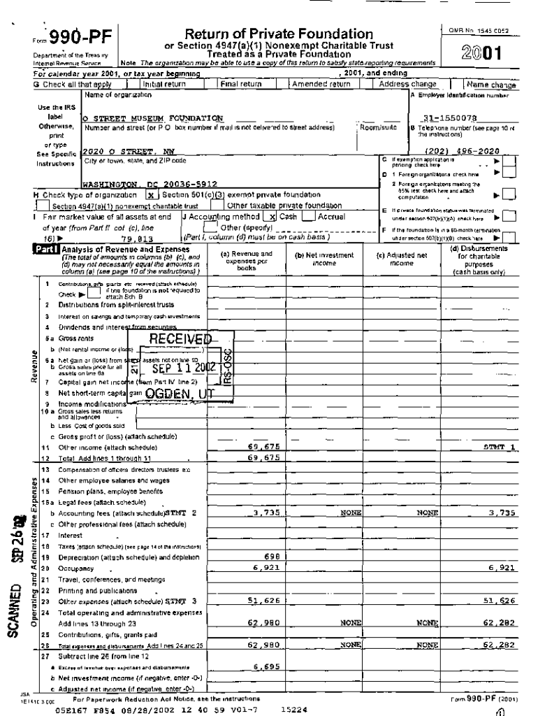 Get the free Fo,m 99d-PF OMB No Treated as a Private Foundation 2001