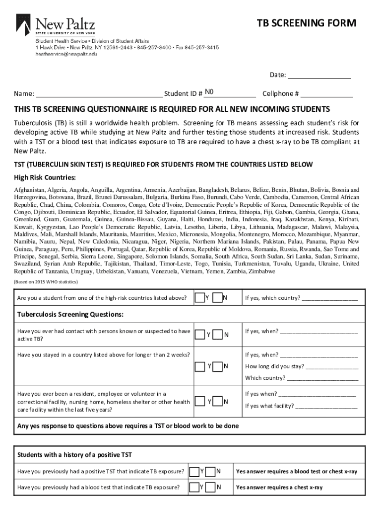 Get the free TB SCREENING FORM - SUNY New Paltz