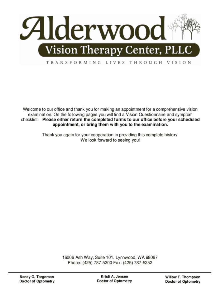 Welcome to our office, and thank you for making an appointment for a comprehensive vision
