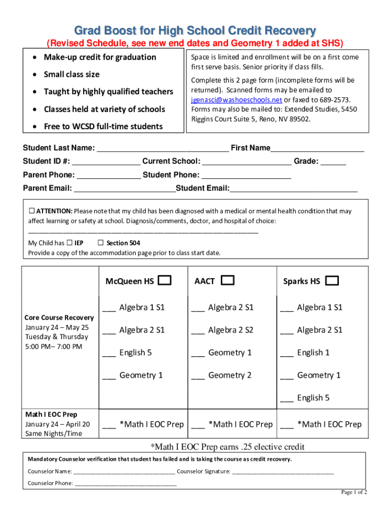 Grad Boost for High School Credit Recovery (Revised Schedule, see new end dates and Geometry 1 added at SHS) Makeup credit for graduation Small class size Taught by highly qualified teachers Classes