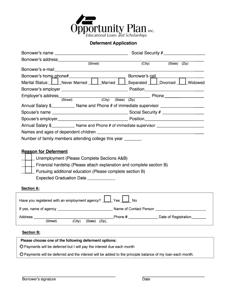 Students may apply for deferment while they focus on their education, while unemployed individuals can use the form to manage their financial commitments during their job search.