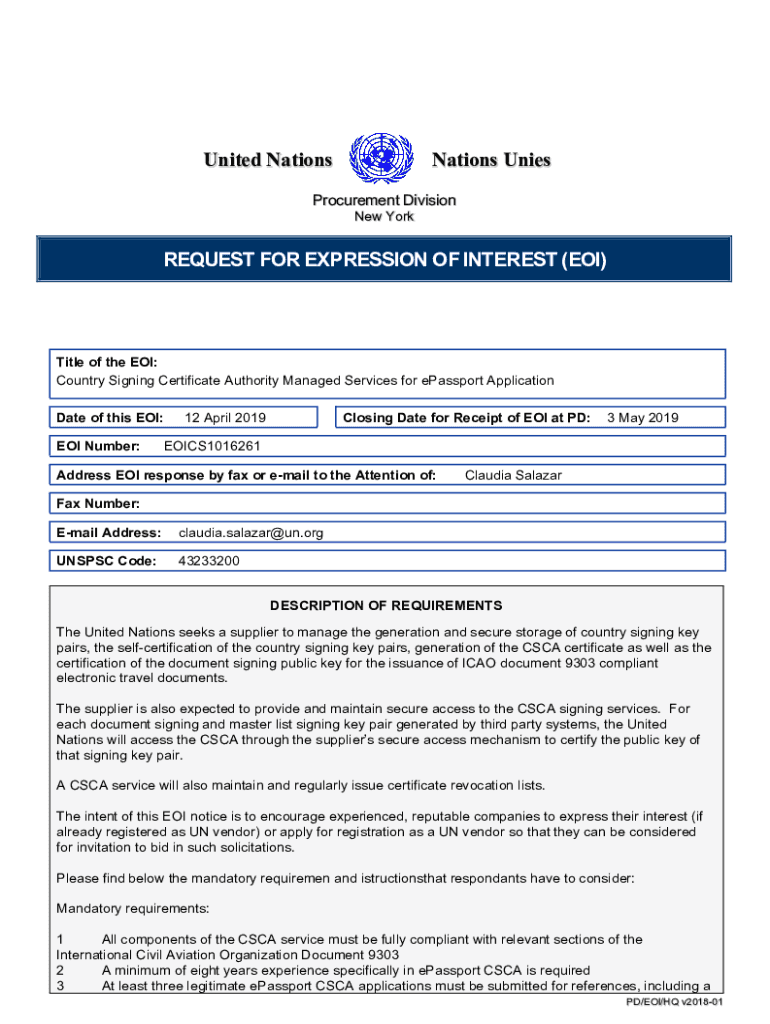 New YorkREQUEST FOR EXPRESSION OF INTEREST (EOI)Title of the EOI: