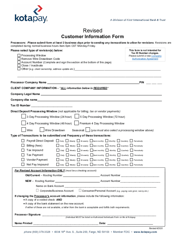 Consider periodically reviewing and updating the customer information form to reflect any changes in requirements or regulations.