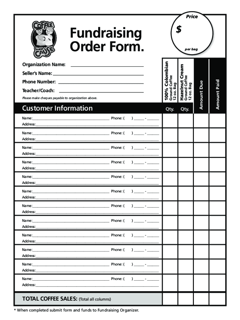 Price$Fundraising Order Form. Please make checks payable to organization above. Customer Information.) Address: Name: Phone: () Address: Name: Phone: () Address: Name: Phone: () Address: Name: Phone: