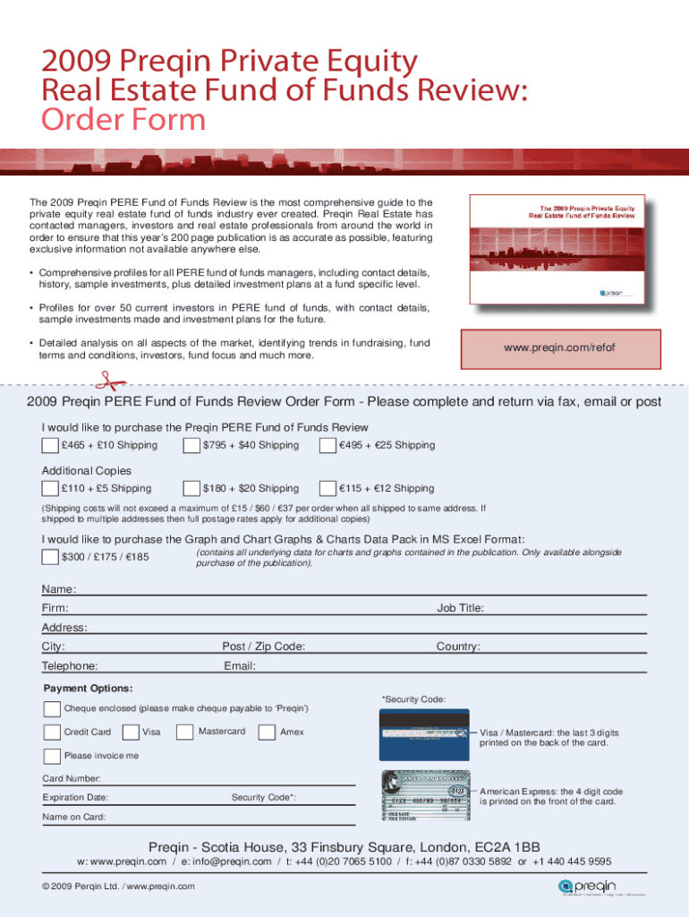 2009 Prefix Private Equity Real Estate Fund of Funds Review: Order Form The 2009 Prefix Père Fund of Funds Review is the most comprehensive guide to the private equity real estate fund of funds industry