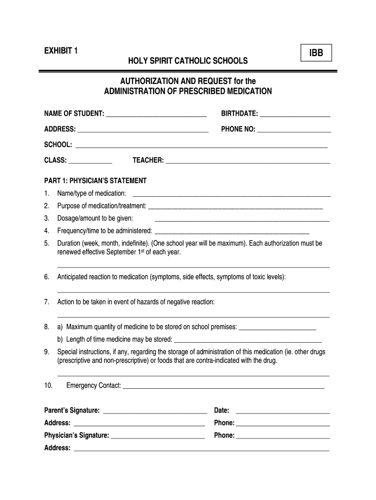 Furthermore, the form integrates the school’s medication administration policy, reinforcing the importance of adherence to established guidelines for health and safety at Holy Spirit Catholic Schools.