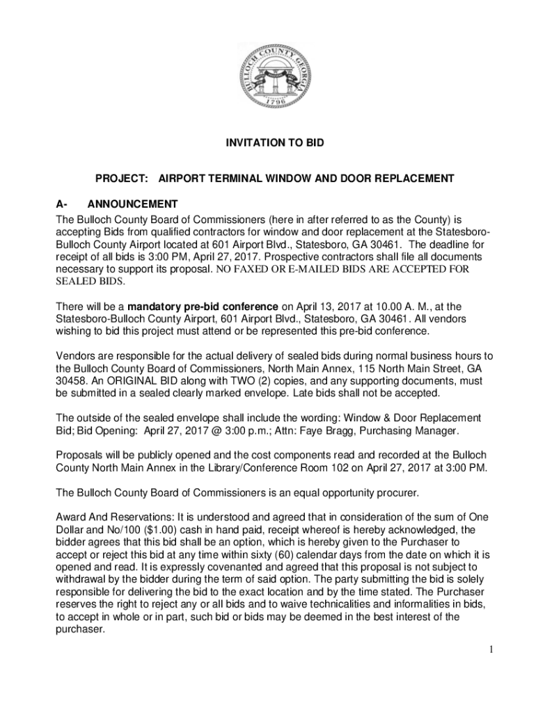 Get the free Notice of SolicitationInvitation to Bid: Bulloch County Board ...