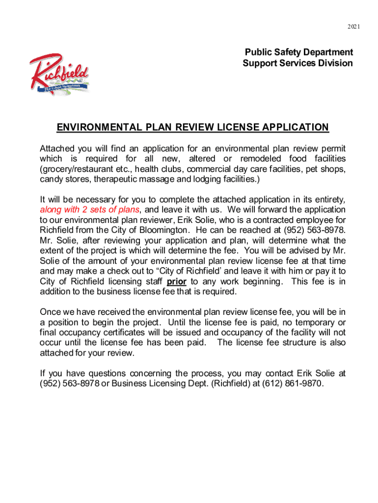 Support Services DivisionENVIRONMENTAL PLAN REVIEW LICENSE APPLICATION