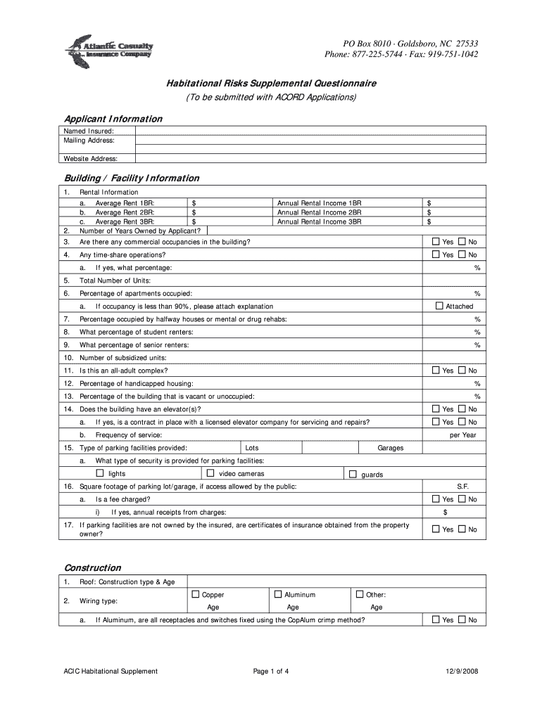Get the free Habitational Risks Supplemental Questionnaire